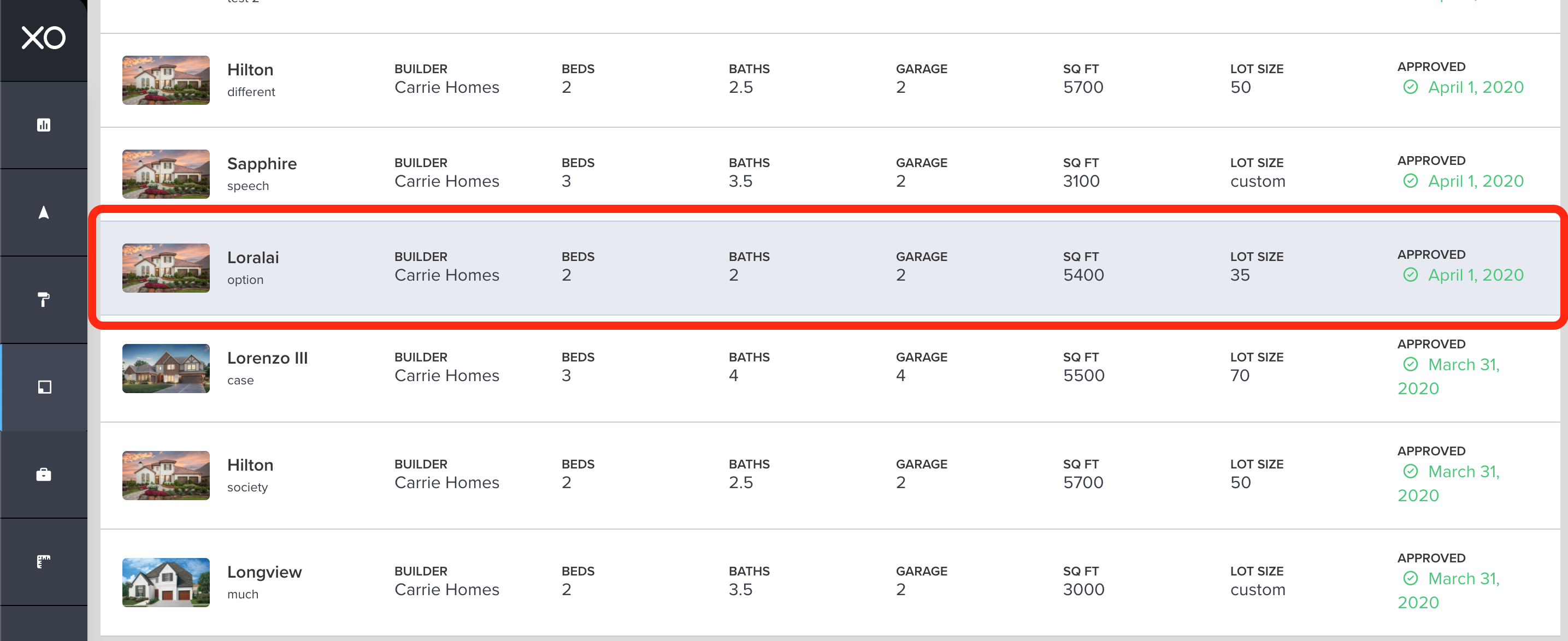 The XO is designed to keep everything organized from specific home plans, models, and elevations that are available within the community. It also help streamline the sales process by running the anti-monotony or repetition rules for the community in ...