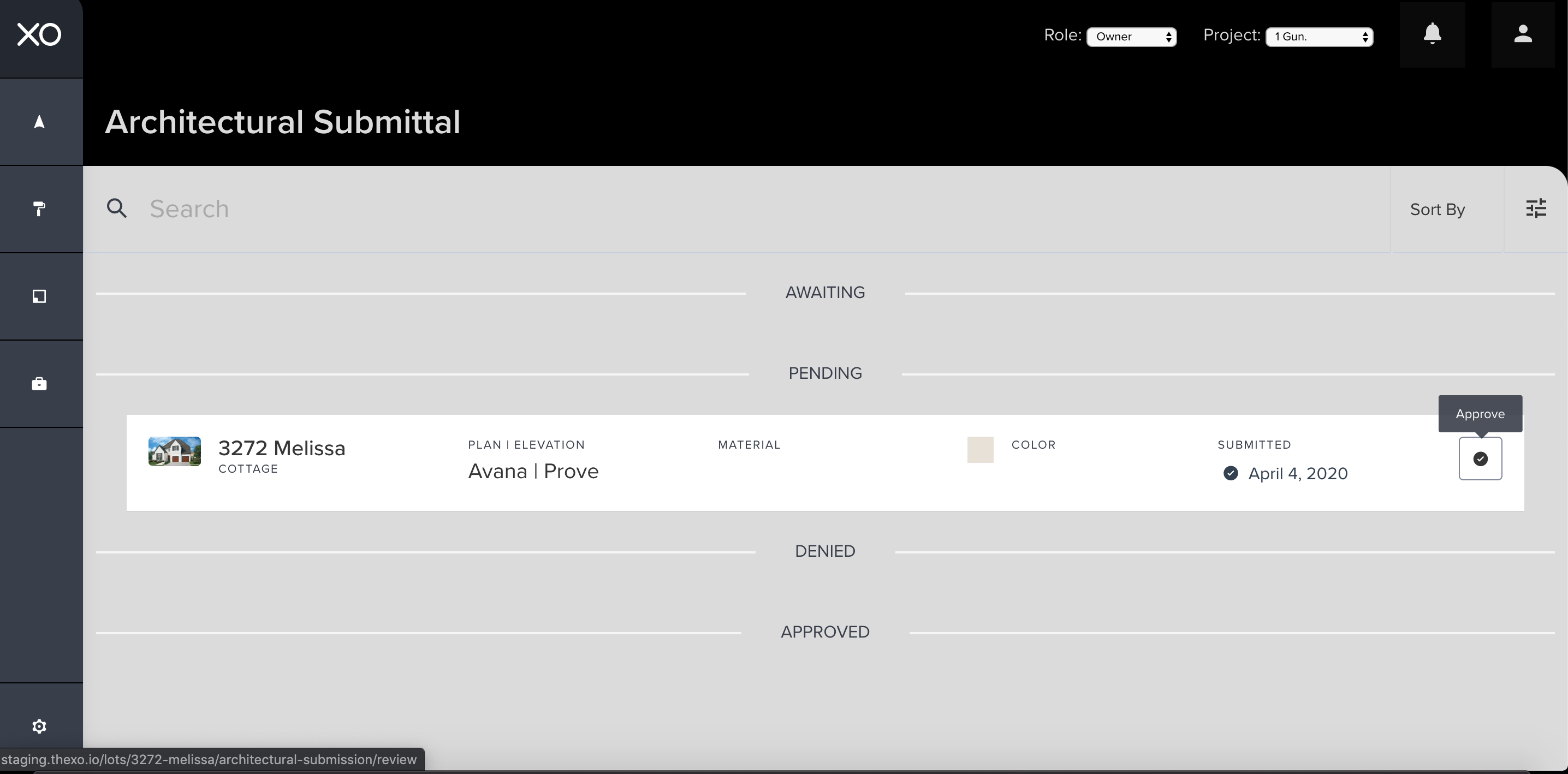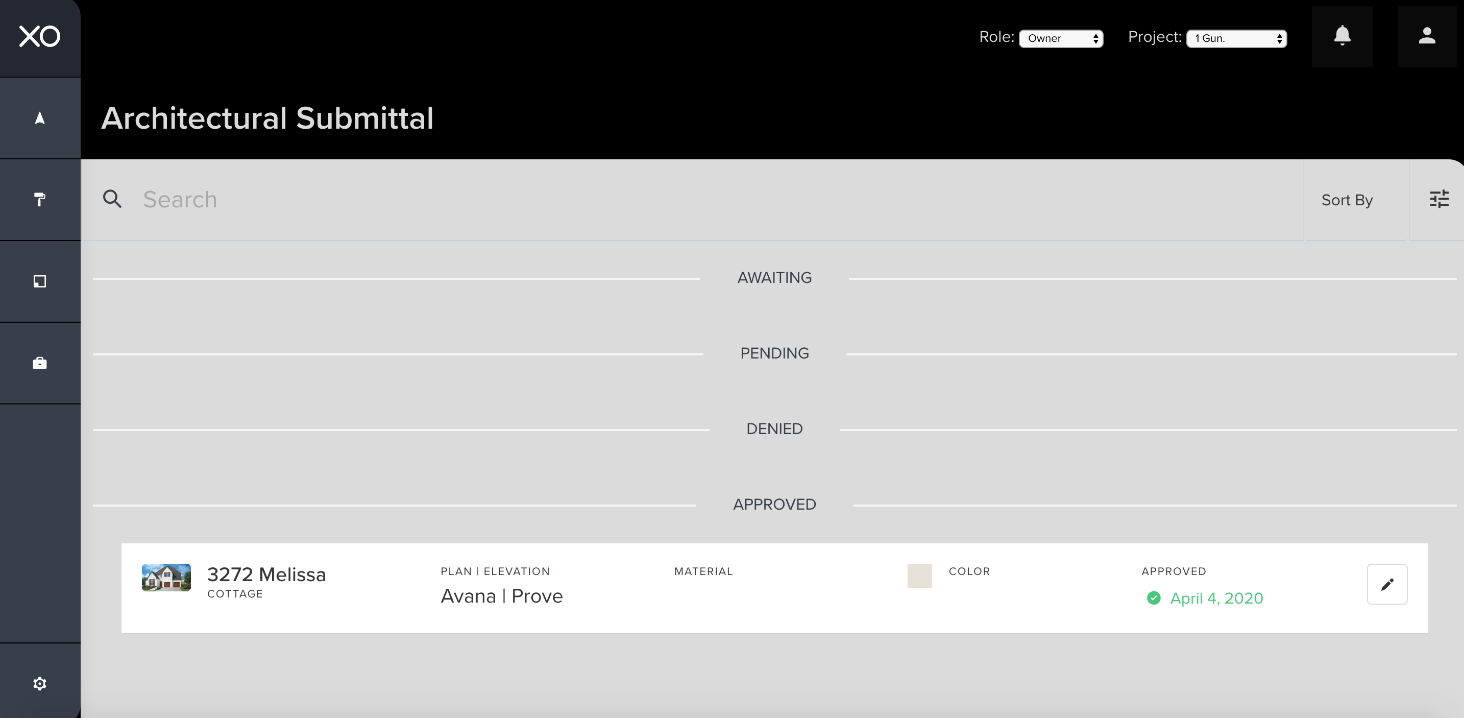 If the architectural submittal is denied for a home under contract or a spec, the request will need to resubmit through the XO. Any feedback from the developer can be accessed within the existing submittal to understand why the submittal was denied. ...