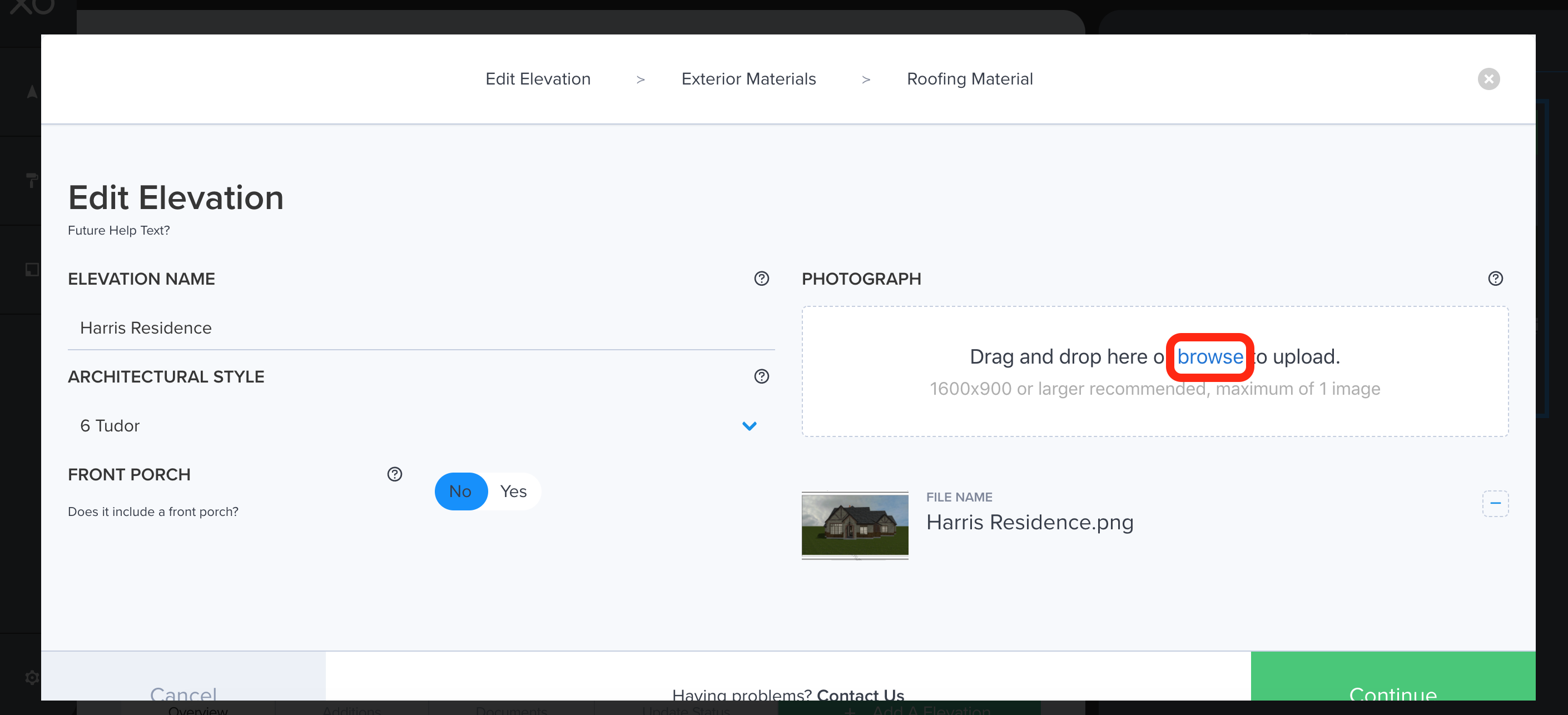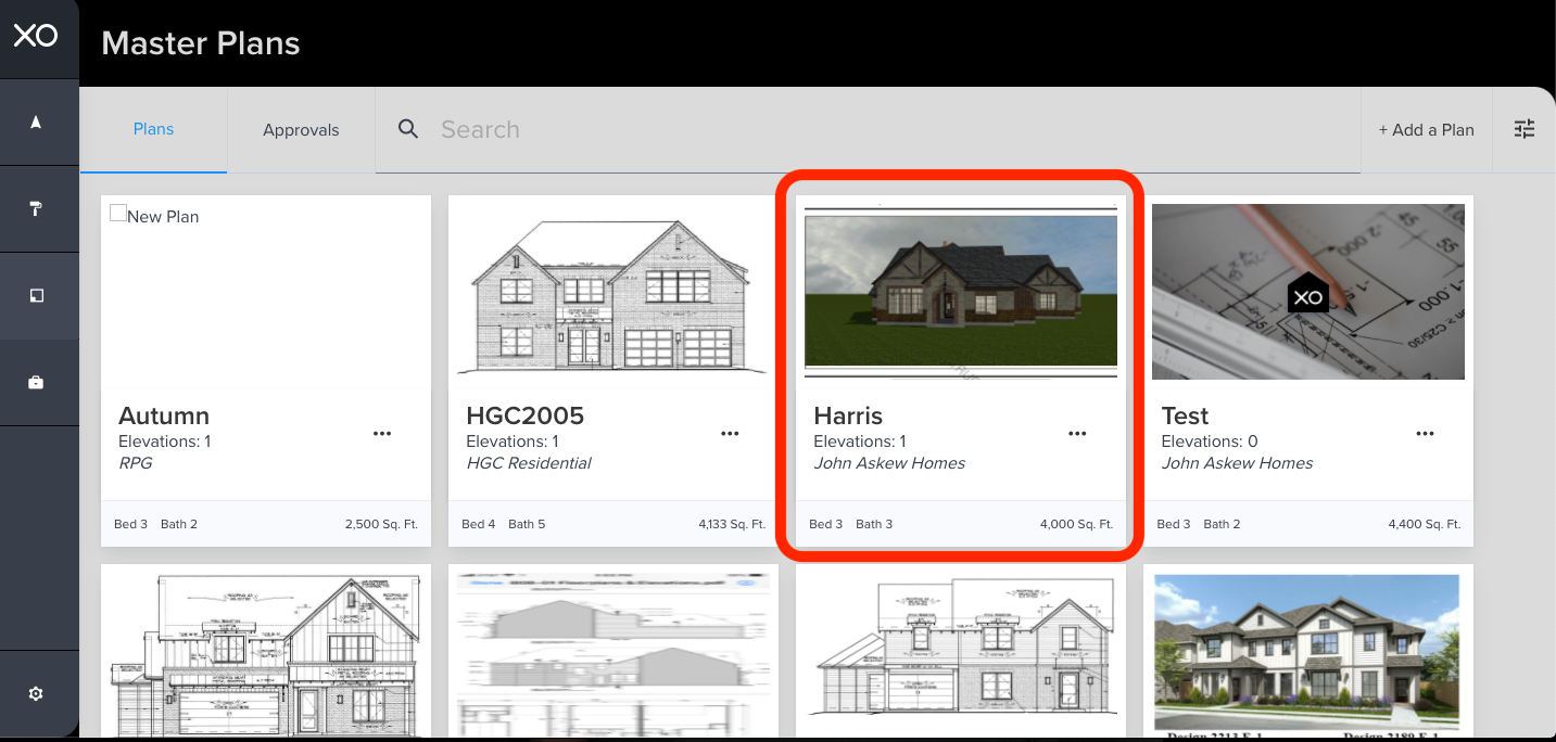 In order to update an existing photo, locate the Master Plans page and select the plan with the associated elevation.