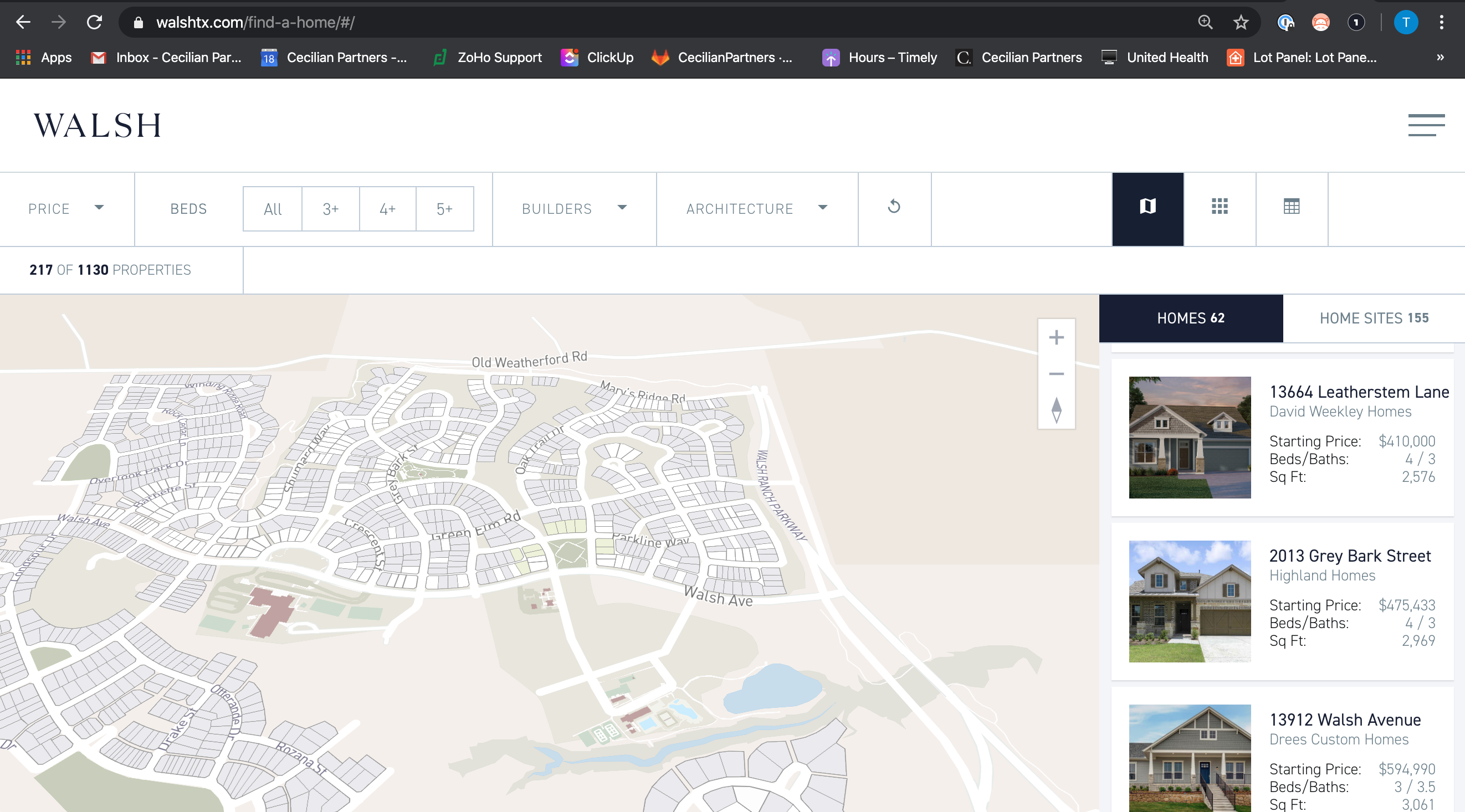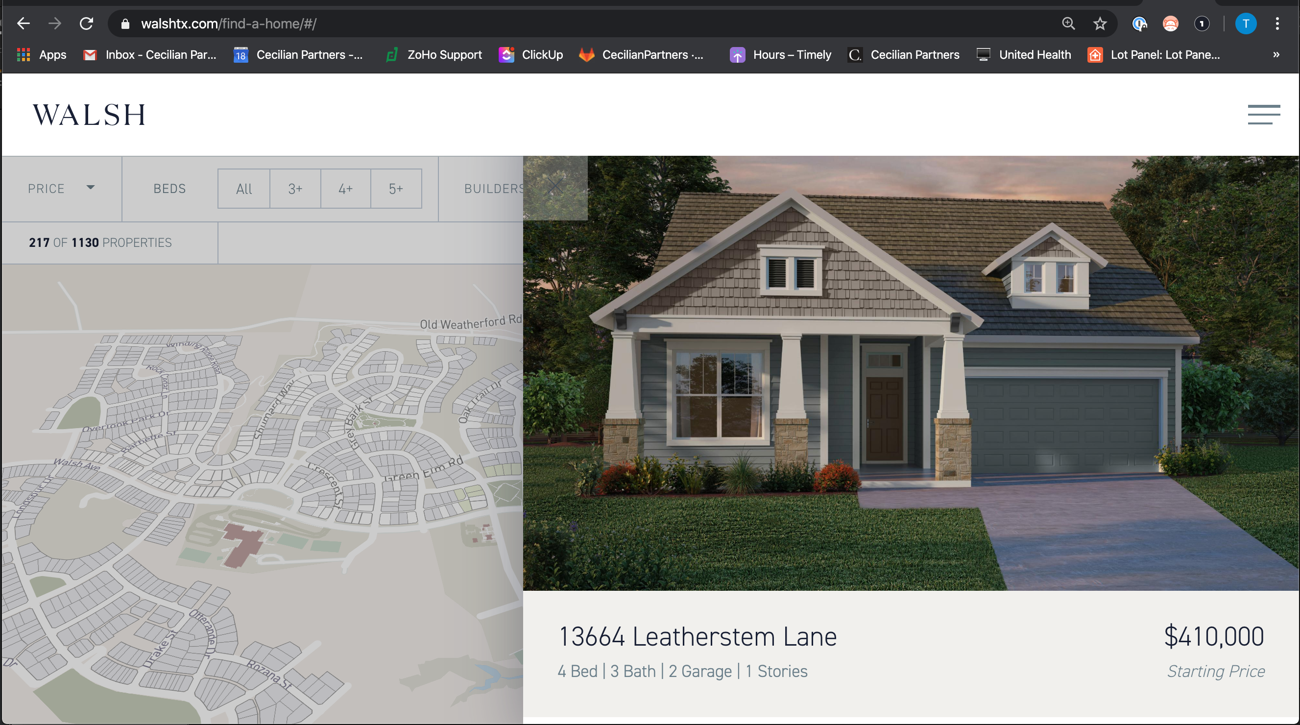 Inventory photos on The XO feed directly to the consumers-facing map located on the community website. it is extremely important to keep all spec or inventory homes up to date as it creates a better customer experience. The primary photo will appear as a thumbnail in the list panel on the right-hand side. Our recommendation would be to use an exterior photo or rendering for the first impression. Simply select the desired lot, and the panel will slide out to show all the spec photos currently approved by the developer in the community.