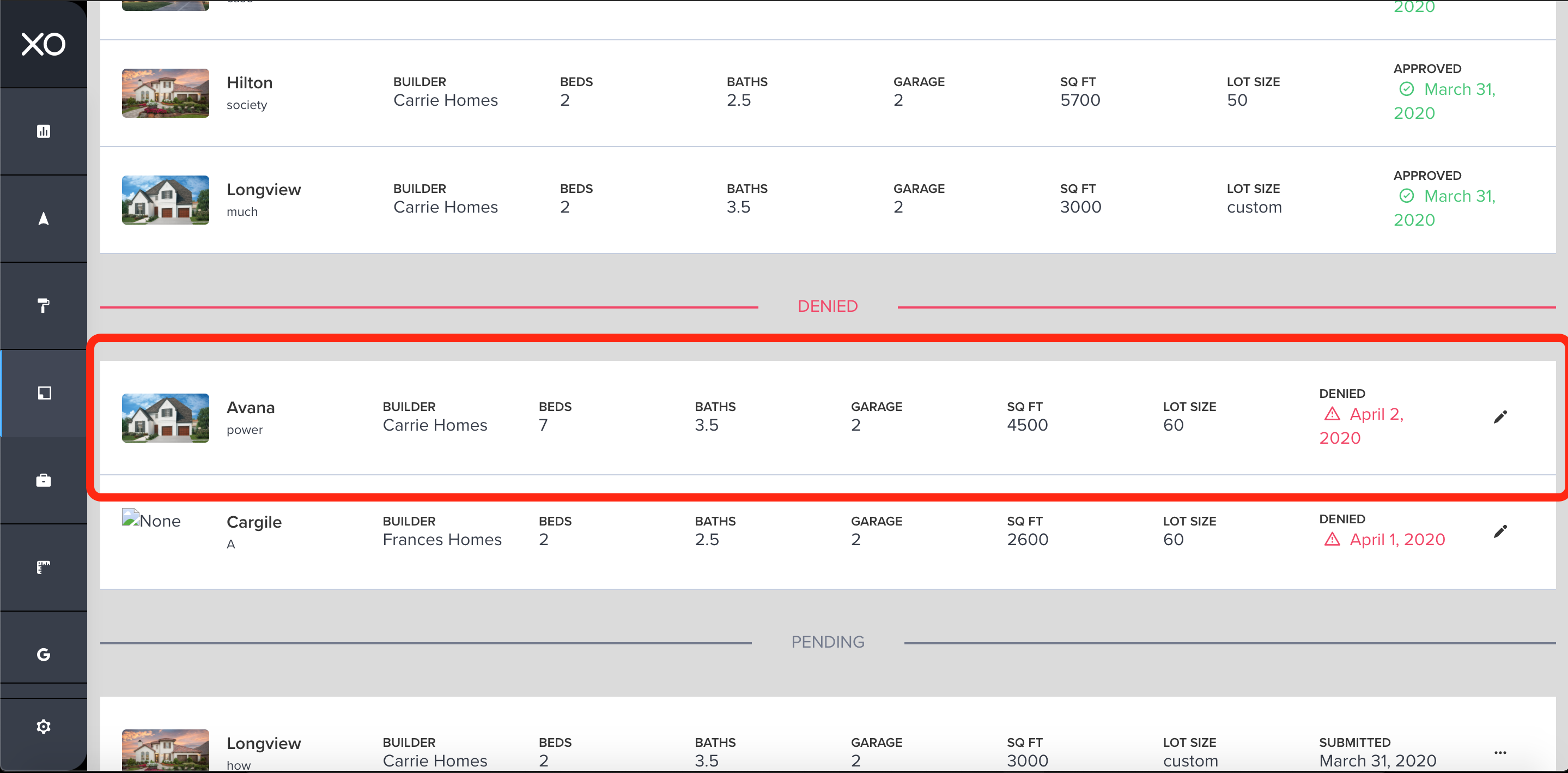 If a Master Plan/Elevation was denied by the developer, users can resubmit the plan for approval in the XO. Simply follow the steps below.