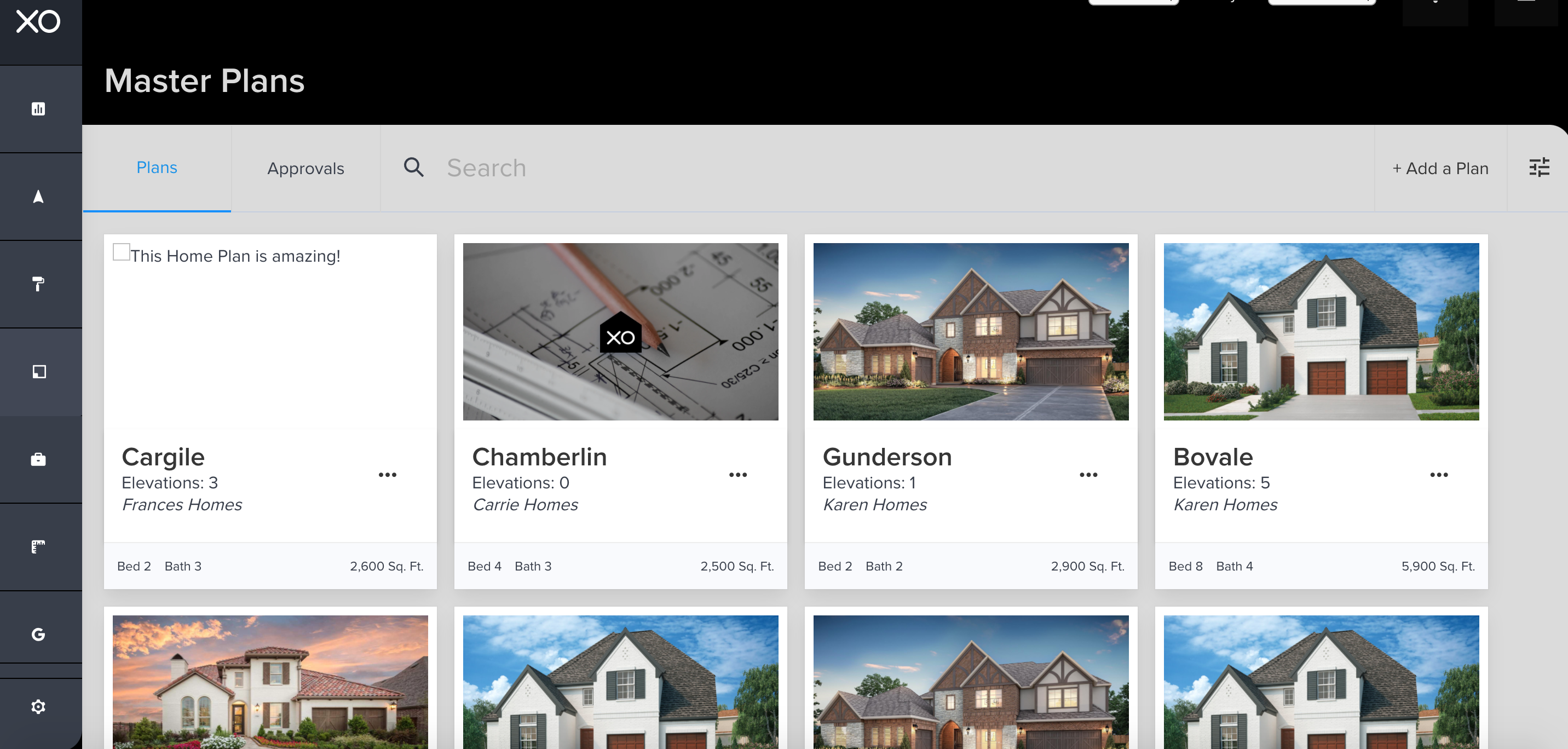 The XO is designed to keep everything organized from specific home plans, models, and elevations that are available within the community. It also help streamline the sales process by running the anti-monotony or repetition rules for the community in ...